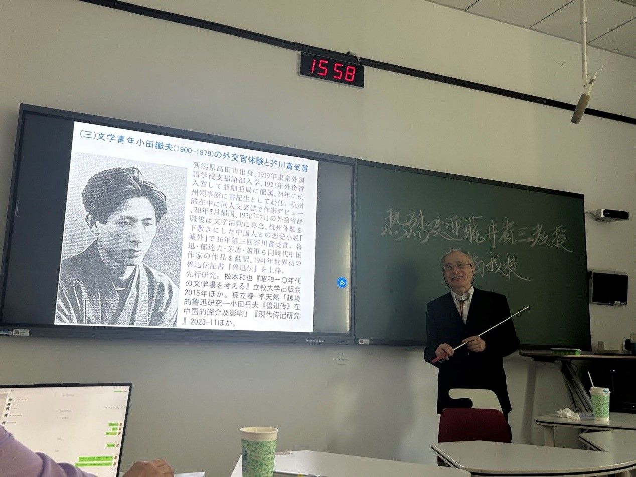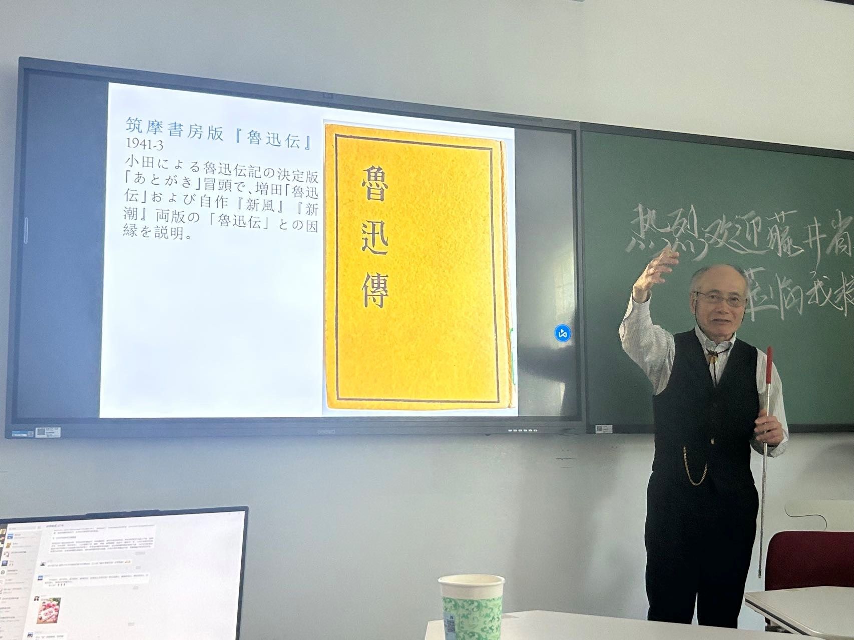 藤井教授以鲁迅文学在日本的接受历程为切入点,深入剖析了其作品如何跨越文化与国界,成为东亚地区共同的精神财富。他提到,鲁迅的《故乡》《阿Q正传》等经典小说自20世纪30年代起便被译介至日本,并被多所中学选入教材,成为日本读者了解鲁迅文学的重要途径。藤井教授着重介绍了增田涉、鹿地亘、小田岳夫等日本作家与鲁迅的深厚渊源。例如,增田涉作为鲁迅晚年弟子,其《鲁迅传》以细腻笔触还原了鲁迅的思想轨迹;鹿地亘则通过战时反战文学与鲁迅形成精神共鸣;小田岳夫的《鲁迅传》更以史料翔实著称,成为日本学界研究鲁迅的奠基性著作。
