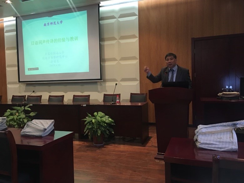 进行了题为“日语同声传译的经验与教训”的讲座。郭连友教授系北京外国语大学日本学研究中心主任、教授、博士生导师,主要研究领域是日本思想史、日本文化史、中日文化交流史。郭教授在同声传译领域享有盛誉,曾在国家领导人、政要会见,媒体同声,交替传译等重要场合以及各种大型会议中担当同传、交传的重任。此次讲座由皮皮虾
