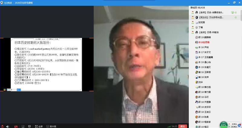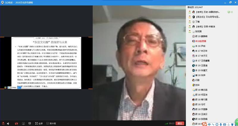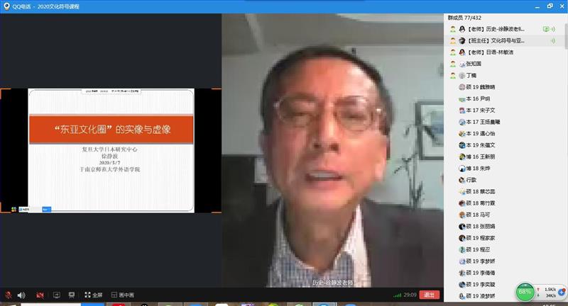 副院长王永祥教授主持的“文化符号与亚洲共同体”研究项目系列讲座第七讲在线上顺利召开。讲座于19:00在QQ群中正式展开。讲座由王永祥教授主持,复旦大学的徐静波教授主讲,徐教授进行了题为“‘东亚文化圈’的实像与虚像”的精彩演讲。QQ群中400多名南师大外院青年教师、硕博研究生和本科生准时上线,一起聆听了这场精彩的讲座。