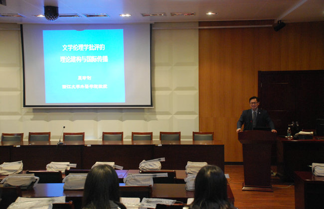 院长王永祥教授主持。聂教授以“文学伦理学批评的理论构建与国际传播”为题进行了精彩的演讲。南师大外院教师和硕博研究生聆听了本场讲座。