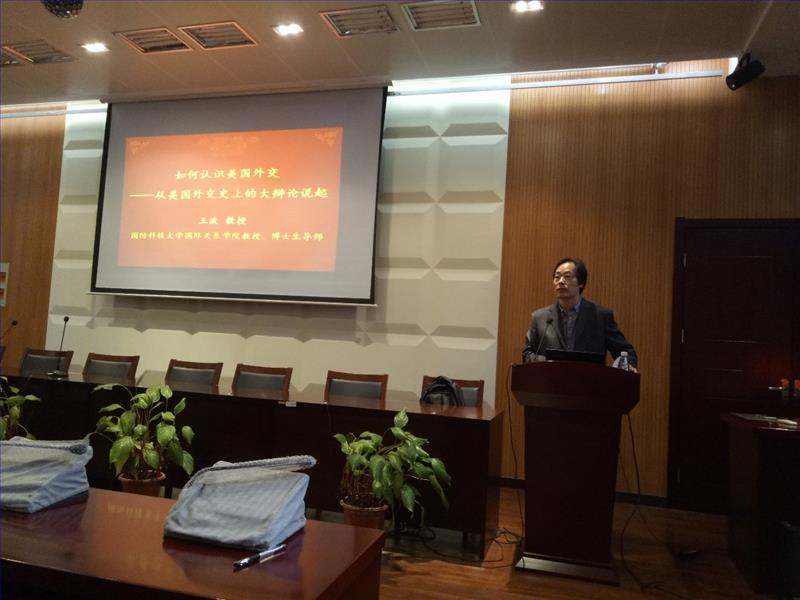 随园校区电教楼101成功举办。本次讲座特邀国防科技大学国际关系学院教授、博士生导师、学科带头人王波教授分享他在美国外交方面的研究心得。