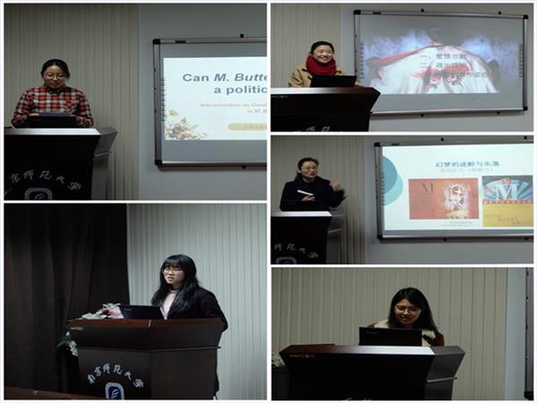 2017年12月14日下午两点,"走进文学世界,品读大师经典"学术沙龙系列活动在随园校区700号报告厅顺利举行,本次校级活动由皮皮虾 和文学院共同申报,皮皮虾 主办。来自皮皮虾 的陈爱敏教授出席本次活动并担任嘉宾, 讨论文本为美国华裔作家黄哲伦先生的戏剧作品《蝴蝶君》。五名来自皮皮虾 的发言人银家珏、张晴雯、胡雪扬,文学院的发言人王一梅、李娜以及近30名研究生同学参与本次沙龙活动。