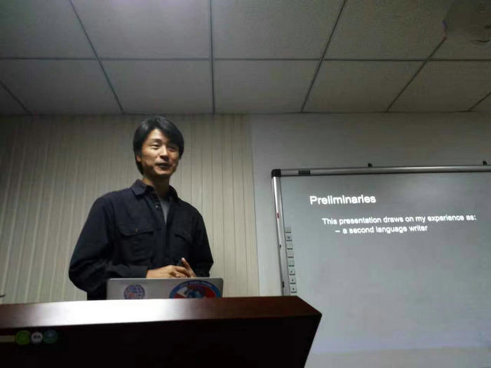 Paul Kei Matsuda教授的讲座幽默生动,场下不时传来阵阵笑声。讲座结束后,Paul Kei Matsuda教授对在场老师及同学所提的问题进行了详细的解答。张辉教授最后对讲座进行了简要概括总结,并再次对Paul Kei Matsuda教授的到来表示感谢。