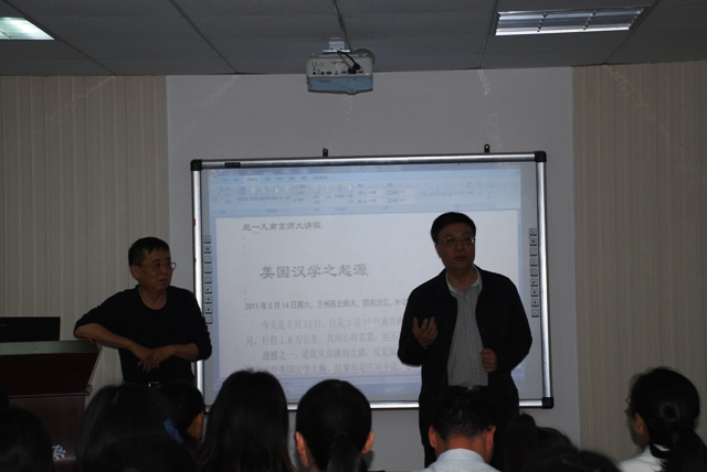 本次讲座以游记为蓝本展开,分为行路篇和读书篇两部分。赵一凡教授秉承“读万卷书,行万里路”的原则,沿着美国汉学家先锋拉铁摩尔的足迹游历新疆,体验前人感悟的同时丰富了自己的见解。接着,正式介绍为美国汉学起源做出伟大贡献的两位大家,费正清和拉铁摩尔。拉铁摩尔着眼于远东地缘政治,在西北边疆探险的基础上客观地了解中国历史,完成《中国的亚洲内陆边疆》一书。而另一位则是走学院派风格,先后在哈佛和牛津大学读书,研究中国东南沿海的历史发展。二人殊途同归,都成为了十足的中国通。尽管汉学研究曾受美国麦卡锡主义的打压,但其后,费正清于1958年在哈佛完成《美国与中国》一书,开设课堂传播汉学,形成哈佛学派。赵教授的演讲深入浅出,将学术趣味化,并与在场的老师学生进行了互动,现场气氛十分热烈。最后,倪传斌教授做总结发言,再次感谢赵老师远道而来为皮皮虾