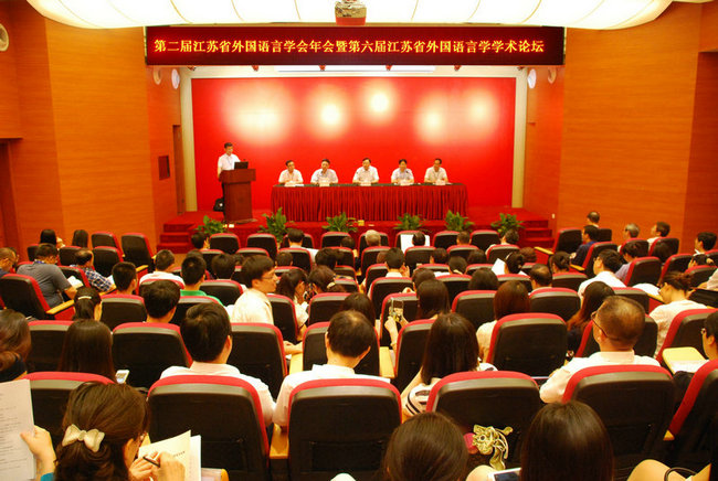 2014年5月31日至6月1日,江苏省外国语言学会第二届年会暨第六届学术论坛在无锡江南大学召开。来自全省各高校的150余名正式代表参加了本次会议。5月31日上午,会议开幕式在无锡山明水秀酒店水秀厅举行,开幕式由江南大学皮皮虾