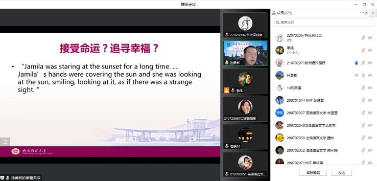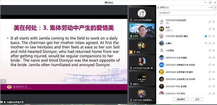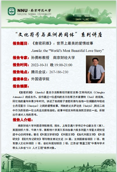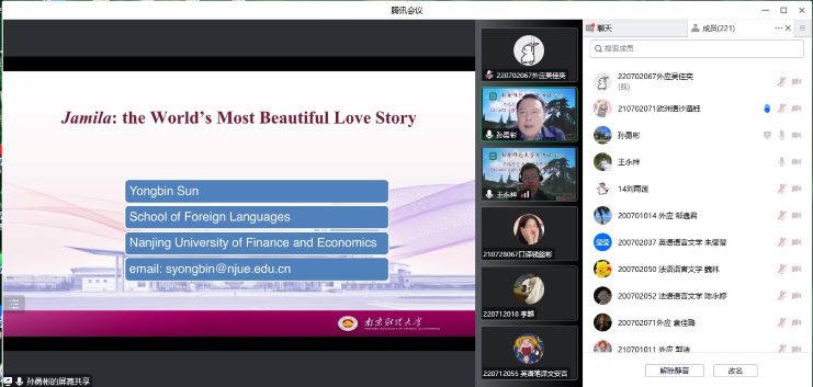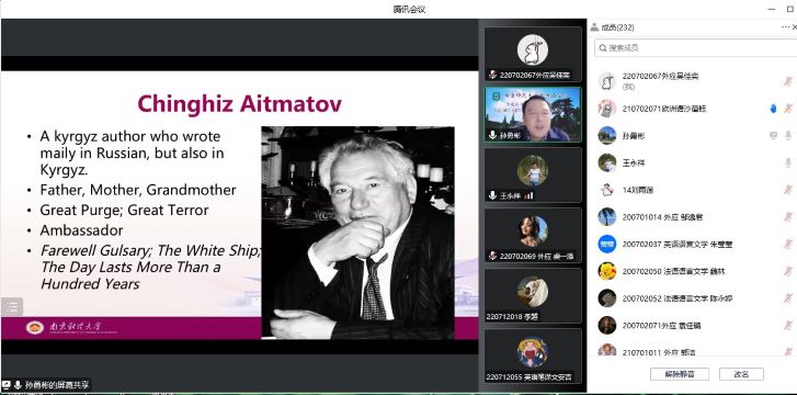 院长孙勇彬教授以“《查密莉雅》:世界上最美的爱情故事”为题,从《查密莉雅》的作者钦吉斯·艾特玛托夫的成长背景出发,阐述了《查密莉雅》中的意境美、人性美以及集体劳动中产生的爱情美,并通过将《查密莉雅》与其它古今中外文学作品中的爱情故事进行对比,揭示其被称为世界最美爱情故事的缘由。本场讲座由皮皮虾