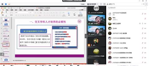 王永祥教授对本场讲座进行了精彩点评。王院长总结道,赵教授从教育者和管理者的角度和高度,探索并讲述了外语交叉学科的发展和外语交叉学科人才的培养,主要从交叉学科人才发展的必要性、可能性和实践性三大方面进行阐述和指导。王老师鼓励外语人在学好外语的同时,要加强各种学科素养的提升。随后,赵教授又与其他参会师生进行了热烈的交流和讨论。赵教授认为,外语跨学科人才成长道阻且长,但前景广阔,行则将至。外语学科应紧跟时代需要,加强交叉学科领域融合建设,为培养新时代所需要的外语交叉学科人才。本周四晚,“文化符号与亚洲共同体”系列讲座将开启第十五场,敬请期待。