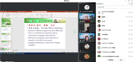 王永祥教授对本场讲座进行了精彩点评。王教授指出,一个老师可以成为一本独特的教材,能展现出特有的教学风格和独有的育人能力,但当今外语老师在文化层面还有所欠缺,应加强自身文化软实习,将文化体现在外语教学上。他认为,本次讲座对外语教师和打算成为外语教师的同学们有着重要的教育意义和实践意义,“文化认同与软实力”也应受到每一个外语人的重视、思考和深度践行。随后,李教授又与其他参会师生进行了热烈的交流和讨论。至此,依托于王教授主持的国际横向课题“文化符号与亚洲共同体”的系列讲座已落下帷幕,该系列讲座大咖云集,内涵丰富,兼具学术性和思辨性,既为广大师生们提供了前沿视角,也拓宽了研究思路,从不同视域、多个维度深度解读了“人类命运共同体”的理念。王永祥教授对所有与会师生表示衷心的感谢,并对所有外语人给予真挚的期望。