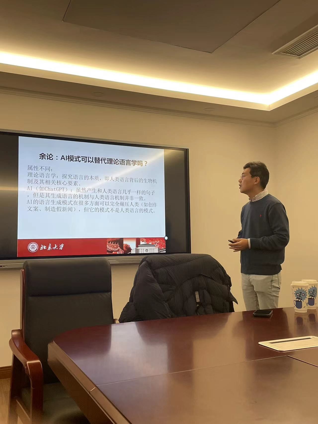 最后,胡教授总结了理论研究的核心本质及其普遍的教育价值,阐述了理论语言学的教育意义,并对”AI模式是否可以替代理论语言学”这一问题进行了讨论。