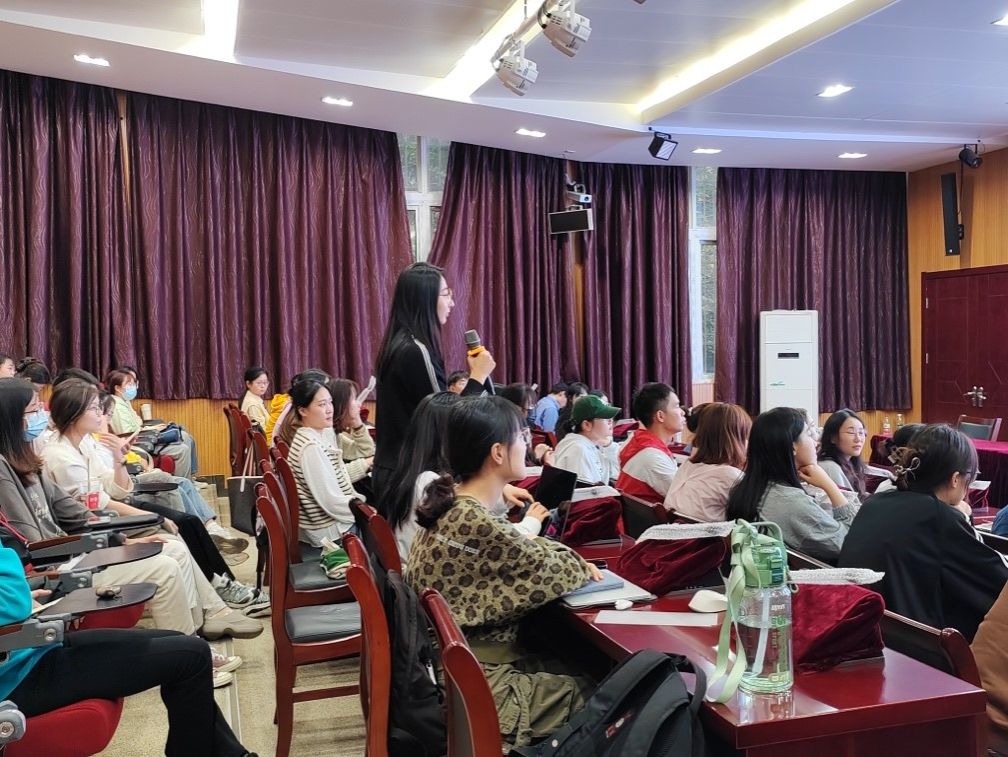 最后,任教授提出了一些关于二语语用学的研究话题和方向,畅谈关于二语习得研究的心得,为同学们提出了宝贵的意见和建议,并耐心解答了现场同学的疑问。现场师生对于任教授讲座内容兴趣十足,在提问环节提出了许多发人深省的问题,从二语习得的语用教学问题,到人际沟通的语用实例、当前二语语用学的前沿方向等,任教授也为在座师生一一答疑解惑,以生动有趣的语言和常见的生活实例,帮助同学们进一步理解。任教授还鼓励同学们多读多思多写,发挥自身优势,在科研之路上发光发热。