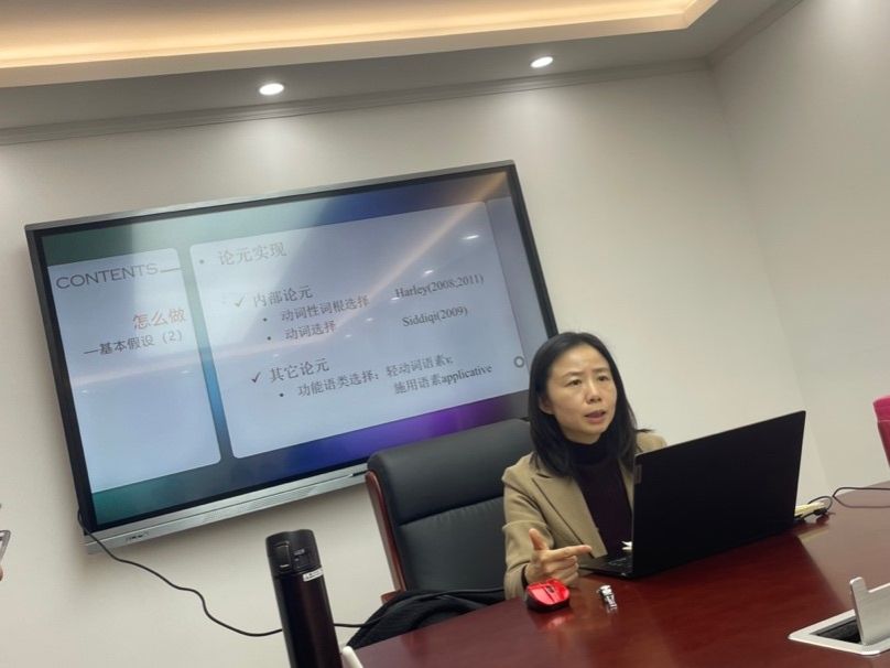 在讲座中,周老师重点介绍了构词句法论,并在此视角下全面系统地考察了现代汉语复合词的论元实现机制,以期帮助学生们更全面地理解形态与句法之间的关系以及句法构词路径如何有利于实现语言研究的演化充分性。