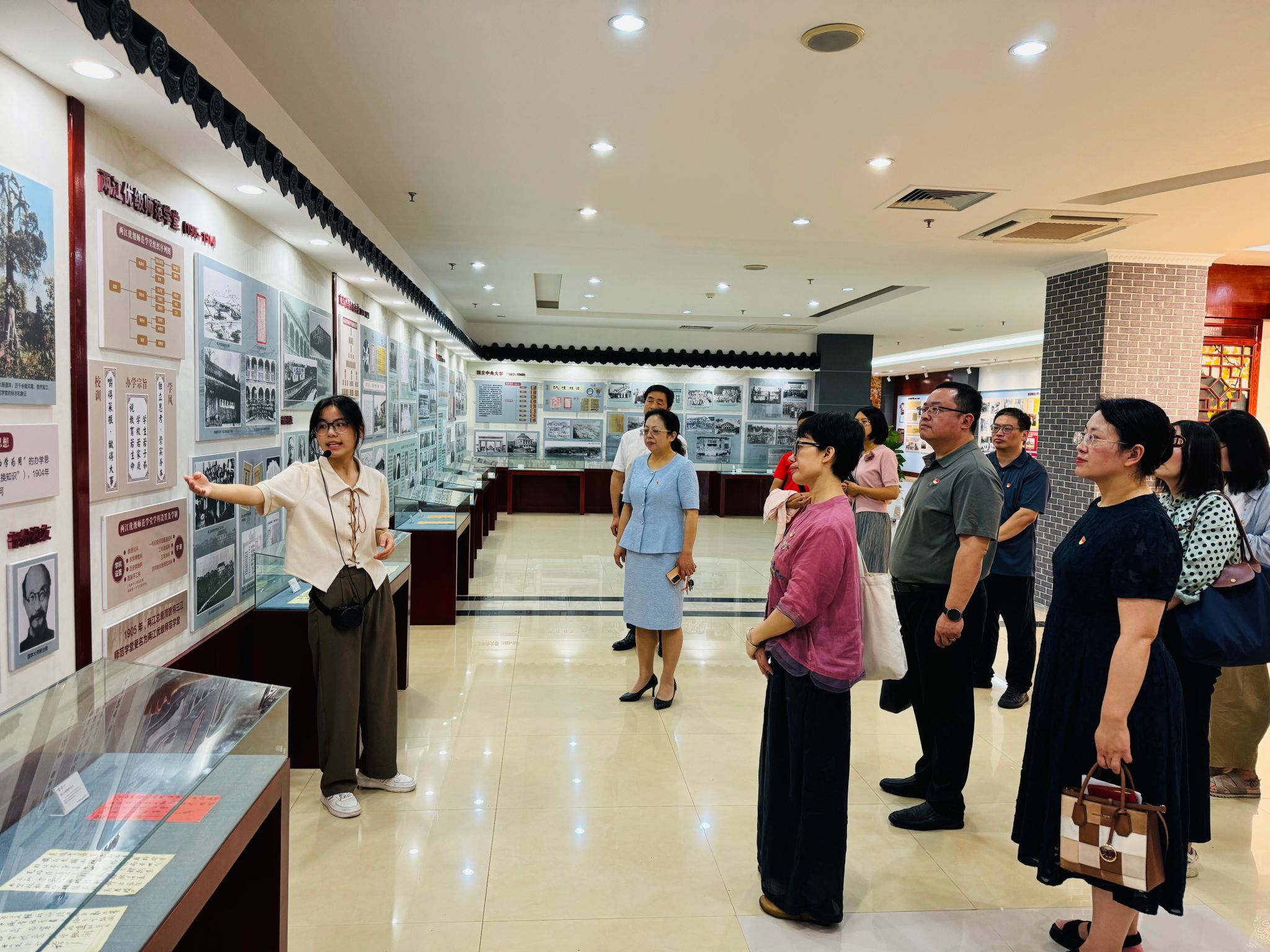 校史馆,一张张古老的照片,一项项傲人的成果,无不彰显着先辈们为南师、为社会作出的重大贡献。党员同志们深切感受到了学校深厚的历史文化内涵,纷纷表示要强化责任担当,甘于奉献,勇挑重担,推进学校教育事业再上新台阶。