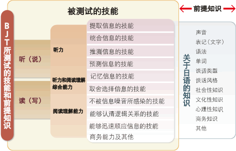 BJT是以具有语法、词汇、汉字等的知识为前提,针对是否能灵活运用这些知识,对所面临的信息进行适当处理这一交流能力进行客观测试的考试。因此,需要运用日语的所有商务场合均为考试范围。