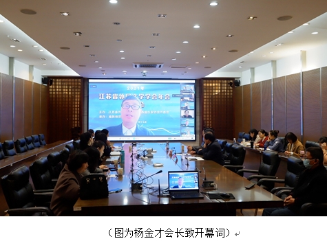 的科学研究、学科建设和人才培养等方面具有积极的推动作用。杨金才会长的发言总结通报了学会2021年度工作,并就如何看待审视(江苏)外国文学研究,谈四点看法:首先是视点的把握。当下的外国文学研究必须立足新时代,面向百年未有之大变局,从世界文化多样性出发,推动文化交流和文明互鉴。其次要清楚认识文学批评的历史使命。文学批评不仅仅是文学的审美批评,还推动文学创作,引领社会风尚。因此在外国文学研究中,还要揭示文学文本中的政治意蕴、文化立场和价值取向,并指出当下的中国历史语境可以为外国文学研究提供参照。再者,要从当代人类社会复杂纷繁的现实出发,进一步拓宽外国文学研究的内涵,并为“中国文化走出去”和“传播中国声音”贡献外国文学研究的一份力量。最后,要从历史进程中关照外国文学研究。只有总结历史经验,把握历史规律,从正确的历史观出发,才能更好地推动外国文学研究。