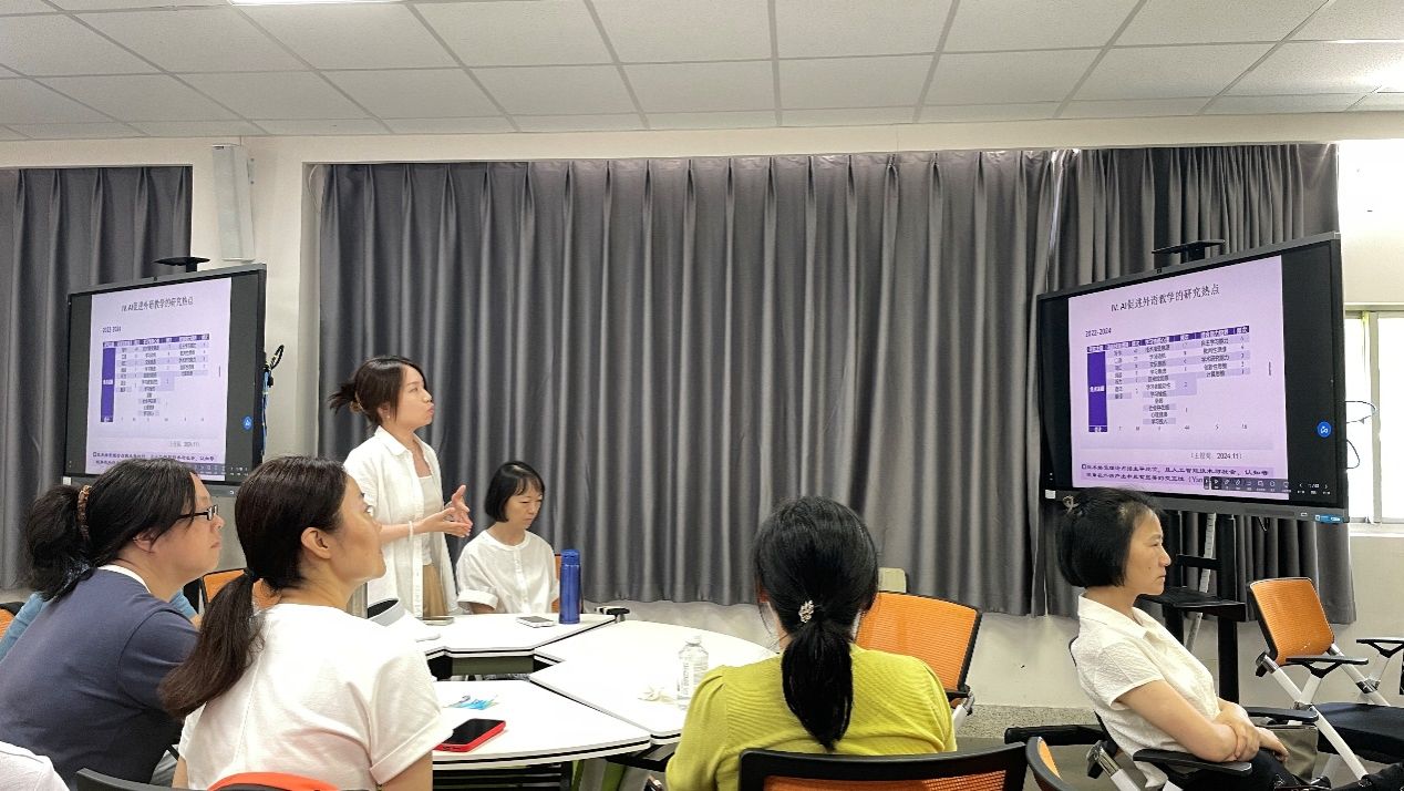 讲座中,邹斌教授首先介绍了其团队研发的人工智能英语口语语音测评系统(EAP Talk)的研究成果。该系统可为学生口语练习实时自动打分,老师能建立管理系统监测学生学习情况,还能促进老师利用人工智能开展教学研究,强化学生多方面学习。邹教授分享了部分研究成果,包括 AI 口语练习系统虽能满足部分学生需求但无法代替老师作用、加入 AI 大模型后学生英语学习能力和兴趣提升、人机交互研究中社交媒体与学生语言学习关联性研究的重要性以及学生对老师使用 AI 辅助教学的建议等内容。此外,他还分享了外语教育技术选刊的经验,如投稿方向、常见问题及注意事项等,并介绍了人工智能教学技术的研究理论基础、值得借鉴的模型、热门研究方向和研究对象等细节。讲座之后,老师们与邹教授进行了充分而热烈的交流。