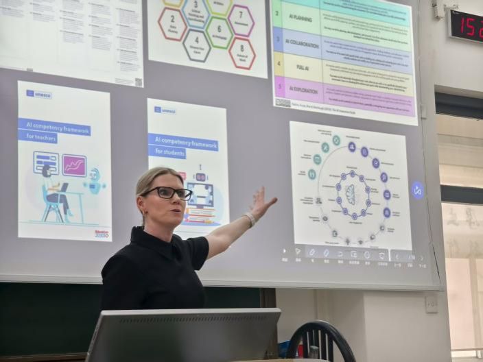 黛珂斯博士强调,“人工智能不仅是工具,更是教育创新的催化剂。”她鼓励英语师范生在未来教学中积极探索AI的应用边界,学会设计融合AI的任务情境,引导学生从信息接收者转变为问题发现者、解决方案的设计者与创造者。