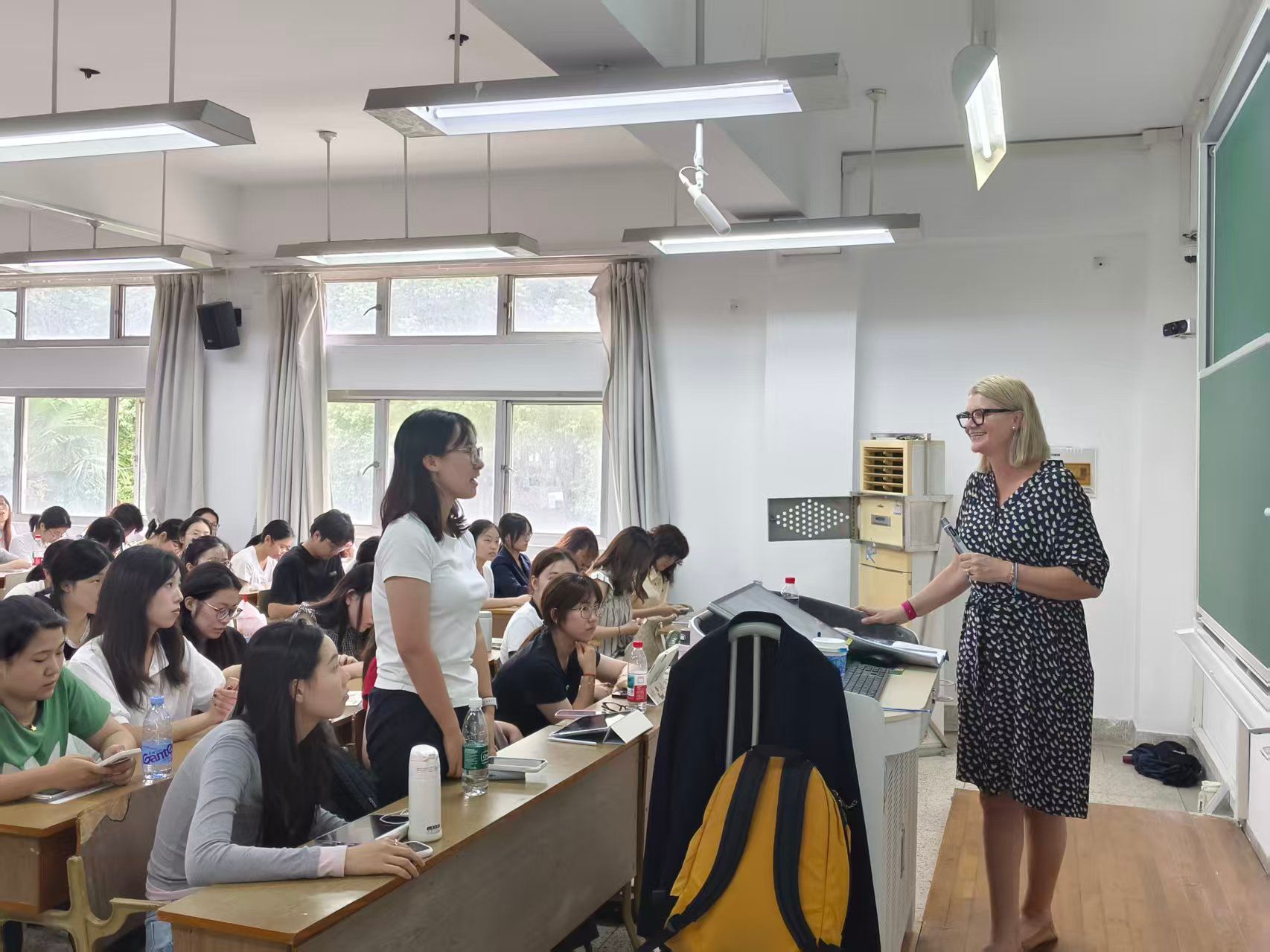 在交流环节,学生围绕AI工具在不同学科教学中的适配性、数据隐私保护及教师AI培训等议题踊跃提问,米勒女士结合昆士兰州的政策与实践案例一一做出回应,现场互动热烈。