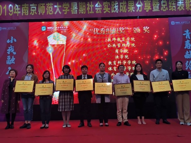 荣获“优秀组织奖”和“突出宣传成果奖”。在49个参赛团队中,共有10个获得优秀团队奖,17个获得优秀调研报告奖,并有3位老师被评为暑期社会实践优秀指导老师,此外,还有5位同学被评为暑期社会实践杰出个人,83位同学被评为暑期社会实践先进个人。