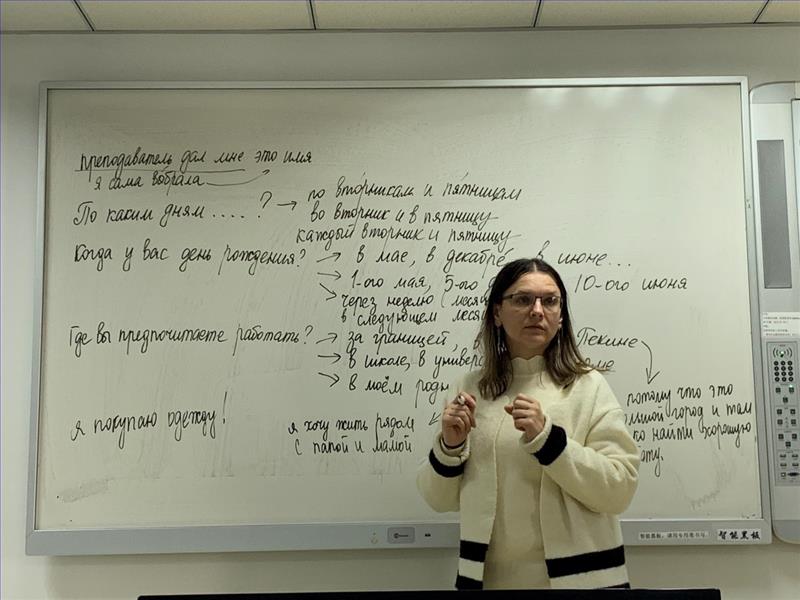 October 12, morning, Room201 of Huacheng Building in Xianlin campus, Russian teaching expert -- Yuliya gave a public speech on Russian practise.