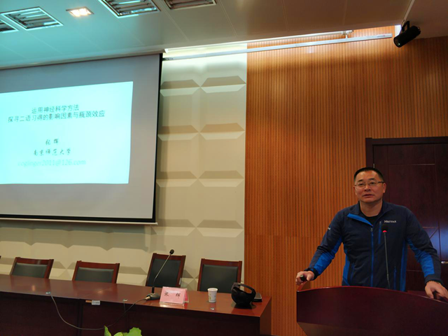 特聘教授张辉老师为研究生们开展了一场题为“运用神经科学方法探寻二语习得的影响因素与瓶颈效应”的讲座。