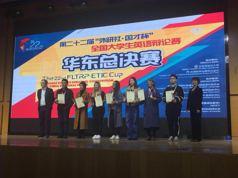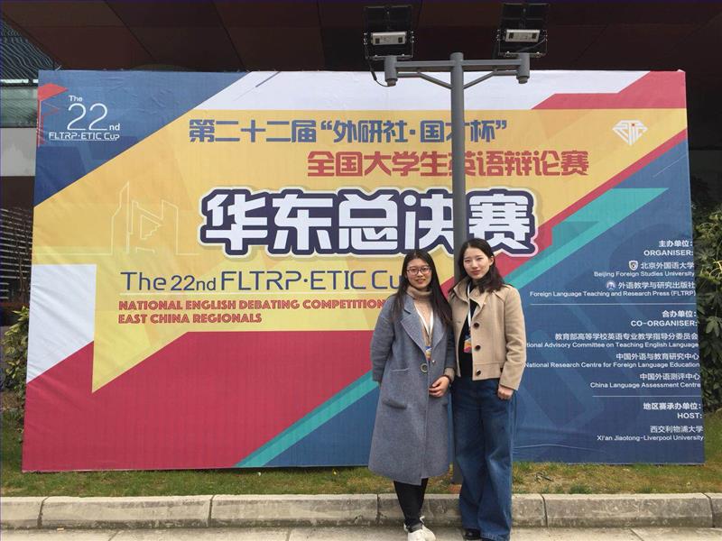 3月22-24日,第二十二届“外研社•国才杯”全国大学生英语辩论赛华东赛区总决赛在西交利物浦大学举行,来自安徽、江苏、山东、上海、浙江的109所院校的109支队伍经过六轮循环赛以及最后一场四强辩论角逐28个晋级全国总决赛的席位。外院16级英西专业的顾晨凤和17级英语师范专业的谢天言发挥出色,最终以总分排名第四的优秀战绩获得华东赛区一等奖,成功晋级全国总决赛,并双双获评最佳辩手。