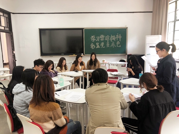 3月5日是学雷锋纪念日,“雷锋是时代的楷模,雷锋精神是永恒的”,为学习和弘扬“雷锋精神”,南师大外院研究生四支部于2019年3月19日至29日分别开展了“学习雷锋精神 彰显党员本色”的主题党日活动,各支部全体党员列席此次活动。