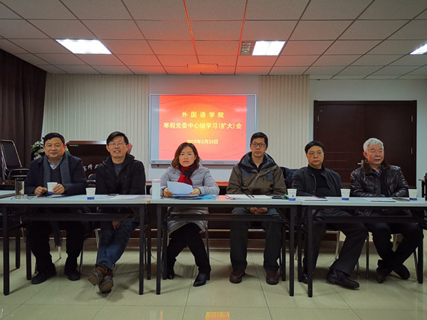 2019年寒假党委会中心组学习(扩大)会议在随园700号楼一楼会议室召开。本次会议围绕“创建一流学科 创建一流学院”的主题,围绕学院在建设时期需要的作风和精神、本科和研究生教学的规范化管理、重大科研成果的共建以及外语学科服务社会经济发展战略等四个方面开展深入研讨,广泛征集意见与建议,进一步推动学院事业发展再上新台阶。学院党政领导班子、党委委员、教授委员会成员、各系科主任、教工党支部书记等全体参加了会议。本次会议由皮皮虾