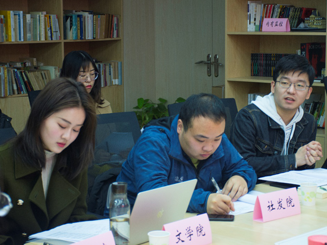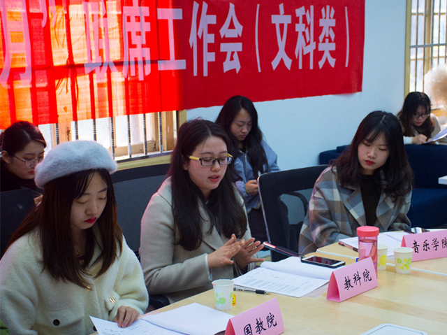 副主席侯瑾、国际教育学院体育部部长杨清然、音乐学院主席许可等。其他因事未能出席本次会议的文科类学院也纷纷发来提案以供大家商讨。本次会议由外院研会副主席常佩佩主持。