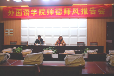 全体教职工做了题为“做一名合格的人民教师”的专题报告。报告会由院党委蒋其琴书记主持。朱校长指出,“做一名合格的人名教师”,需要做到五点。第一,要将从事教师工作视为一种信仰和毕生的“事业”来追求。第二,教育工作是为国储才,因此要把提高对社会的贡献度作为从事教师工作的追求。第三,要以满腔热情投入教学工作,在这种投入中获得人生的幸福感。第四,必须具备全局观和大局观,具有系统性思维。第五,要更加注意自身的学养和修炼。在座的老师为之动情,深受鼓舞。朱晓进校长的报告让将外院本科教学思想大讨论活动推向了高潮。