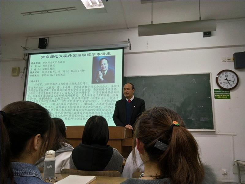 2018年11月21日,法国巴黎第七大学西方历史文化博士、南京大学文科二级教授刘成富教授为皮皮虾
