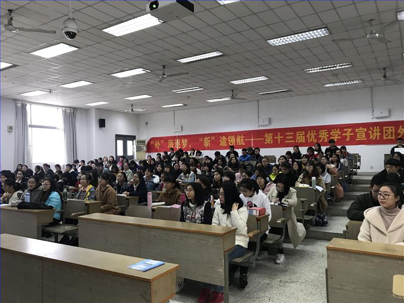 联合主办的,第十三届优秀学子宣讲团“‘外’海逐梦,‘新’途领航”外院专场系列宣讲,先后在学明楼401、502隆重举行。优秀学子宣讲团成员、外院2016级杰出学长王一宇作为特邀主讲嘉宾,为2018级全体新生带来了一场精彩的学业发展讲座。外院2018级辅导员陈颖老师出席,“先锋党校”党支书、外院2015级沈天哲主持。