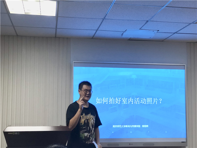 图片作为新闻稿的重要组成部分,其拍摄也需要一定的技巧。周维熙学长与孙磊学长分别从活动摄影与人物摄影两方面对该主题进行了全方位的诠释。首先,周维熙学长以幽默风趣的语言从定义、构图、修图三个方面向大家介绍了会议拍照的注意事项,他强调拍照角度要多样以体现活动主题,在中景照的拍摄中要选取简洁背景以突出主体。来自南京大学的半职业摄影师孙磊学长以其丰富的摄影经历及专业性,就如何提高照片质量及人像创作等问题,为大家作出解答。海报制作的实操演示让大家对PS的运用有了更具象的了解,使大家受益匪浅。