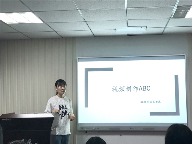 吴若愚学姐用生动活泼的语言和大量图片向大家具体介绍了视频制作的基本流程及注意事项,她以自己的视频为例,燃起了大家对视频制作的兴趣,拓宽了大家对视频这一宣传渠道的认知。她指出视频制作的关键不在于技术而在于创意,创意是影视动画制作中的灵魂。吴若愚学姐的演讲通俗易懂,简明风趣,其中推荐的大量视频制作学习材料和软件让新手们受益良多。最后,吴若愚学姐以自己的外院研会经历寄语新成员们不畏困难,坚持坚守,鼓励大家一步一脚印地成长。至此,此次大会历时三个小时并圆满结束。