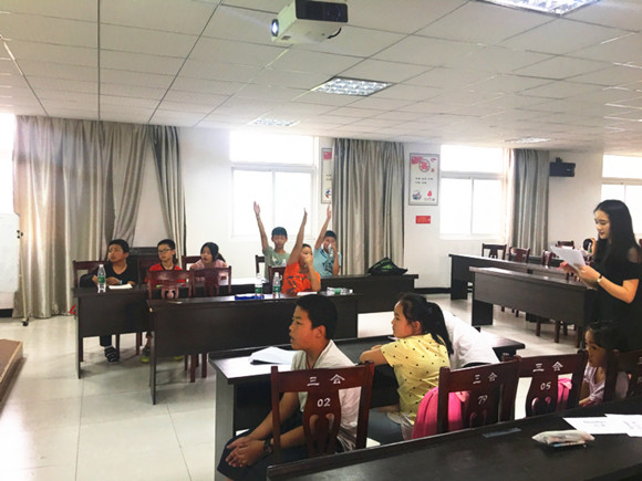 在这五天的时间里,队员们每天上午在八点半到九点十分、九点二十到十点十分、十点五十到十一点半这三个时间段里进行课业辅导的教学活动;在十点二十到十点五十期间带着小朋友做一些英语小游戏——例如:抱团游戏、萝卜蹲、单词接龙等。中午有两个小时的休息时间,在这段时间里,小朋友们吃完饭后会看半小时的电影然后睡觉休息。下午的活动时间为一点半到四点。这段时间可以分为三个阶段,第一阶段为英语国家文化介绍,这五天的教学内容分别为:足球文化介绍、饮食文化介绍、英国皇室文化介绍、好莱坞介绍与迪士尼介绍。第二阶段为二点四十到三点的英文歌曲教唱,到今天为止,负责这部分教学活动的队员已经完成了:“Apple Song”、“If you are Happy”、“Five Monkeys”、“Old Macdonald”与“Moon River 等歌曲的教唱。第三阶段为专题教育活动,这一部分队员主要是教导留守儿童一些与人相处、保护自己、学会自信之类的道理,同时对他们进行一定程度的心理疏导,让他们学会理解,学会“爱”;到目前止,队员已经完成的专题教育有:“培养兴趣爱好”、“法律小知识”、“学会自我保护”等。