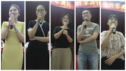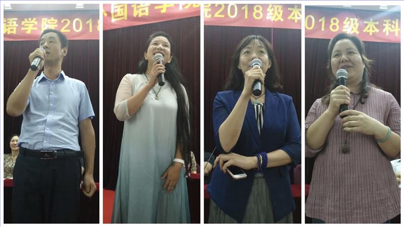 接着,各专业老师代表依序上台用八种语言作了生动有趣的寄语。他们不仅展现了外院多语种双语学科特色,也表达了他们对新生殷切的期望。老师们的叮嘱与祝福感染着每一位新生,现场掌声雷动,气氛一度推向高潮。