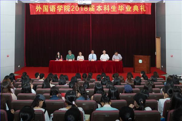 最后,严志军院长发表致辞。他首先对2018届毕业生表示祝贺,对关心支持学院发展的家长和嘉宾表示感谢,并回顾了作为五年全日制双外语的毕业生的成长和出色成就。此外,他也提出了“Only doing your duty is not enough, you have to go the extra mile”这“多走一英里”的嘱咐,希望多付出的一年在他们的人生旅程中不断给大家带来回报和惊喜,并预祝各位在新的事业、学业中有更大成就。