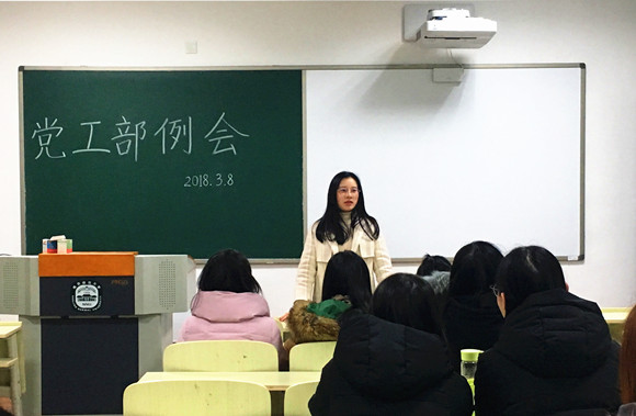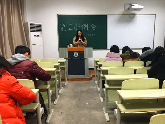 2018年3月8日,外院研究生党工部在南师大随园校区北大楼201顺利召开本学期第一次例会。本次会议由外院研究生党工部副部长主持,全体党工部成员参加了此次会议。