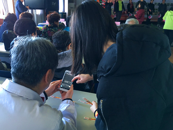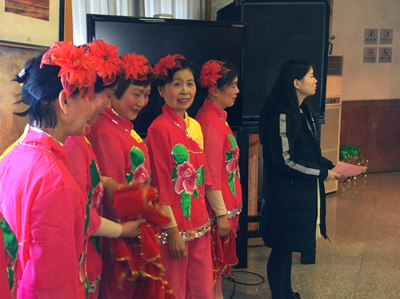 在志愿活动期间,各位志愿者各司其职。负责引导的志愿者在与负责人确定节目顺序之后在每个节目开始之前都把该节目的参演人员带到指定位置;负责拍照和引导观众的志愿者在正确引导观众入席的空隙也对现场情况进行拍照记录;负责教观众扫二维码的两位志愿者,在给每位观众发放一张号码条的同时也教观众如何参与微信上墙活动,由于到场的观众大部分是年纪较长爷爷奶奶,他们对于微信扫描二维码并不熟练,两位志愿者非常认真且耐心地教老人们,而正是由于她们的认真耐心,老人们对志愿者们一致好评。
