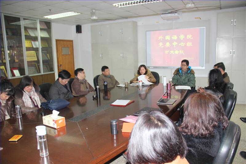 党委中心组扩大会议在仙林校区召开。会议的主要议题是,学习上级文件,总结全年工作,同时围绕“思想意识形态和思想政治工作”与“创建一流学科下的人才队伍建设工作”进行研讨。学院党政领导班子全体成员、党委委员、正科职干部、各系部教研室主任和工会主席参加了会议。会议由外院党委蒋其琴书记主持。