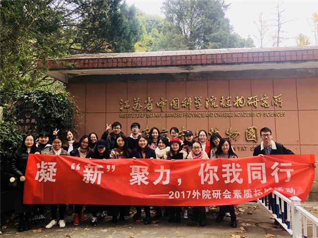 研究生会于南京市中山植物园开展了第一次校外素质拓展活动。此次活动的主题是凝“新”聚力,你我同行。该活动旨在促进研会新成员之间的交流,增进彼此之间的情谊,从而加强研会的凝聚力,为研会今后顺利开展各项活动打下坚实的基础。