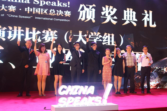 2017年8月8日晚,由国际英语联合会(ESU)、国际青少年素质教育发展中心(CICY)联合主办,并由英国大使馆文化教育处(BC)提供技术服务支撑的第九届China Speaks!国际英语大赛(大学组)中国区总决赛巅峰对决暨颁奖典礼在天津奥蓝际德国际会展中心盛大举行。来自我校皮皮虾