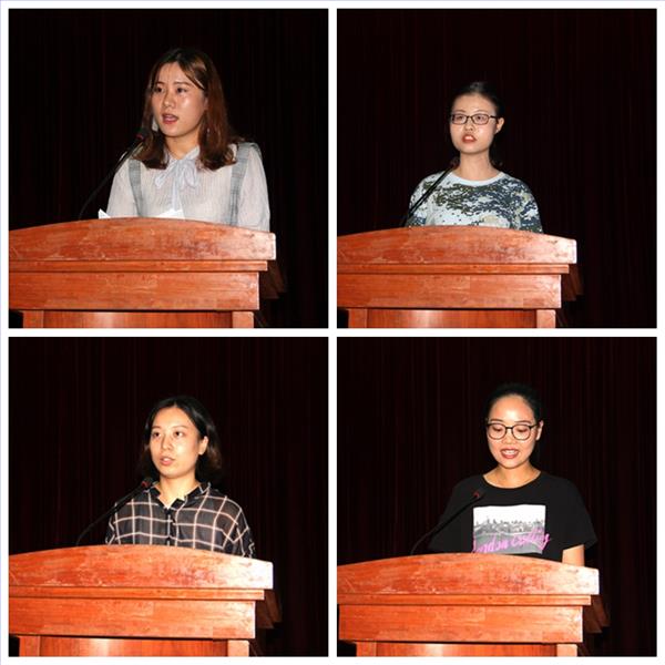 新老研究生代表戴好运、柳霖同学上台发言,站在人生十字路口的她们在讲话中纷纷表达了力争上游的勇气与决心。本硕博连读的戴好运同学更是指出学习应重钻研,处于象牙塔中的大学生不应固步自封,而应沉下心来研读文献,为学术研究奉献自己的力量。