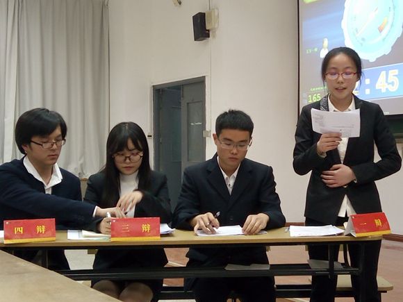 本次比赛的辩题是“专车合法化是否有利于出租车行业的良性发展”,反方对手为生命与科学学院辩论队。与赛评委有南京邮电大学校辩论队队长陈夏凯,南京大学优秀辩手梁爽,南京工业大学校辩论队队长马雷,南京财经大学校辩论队领队王其其和南京农业大学校辩论队队长张子奇。在本场比赛中,双方辩友激烈交锋,就专车合法化这一关注度极高的政策进行了一场精彩的比赛,针对性地发表了对该政策的意见和建议,准备充分、侃侃而谈。在五位评委的一番激烈商讨后,外院辩论队以3:2的比分成绩险胜生命与科学学院辩论队进入四强,反方生命与科学学院三辩获得本场比赛最佳辩手。