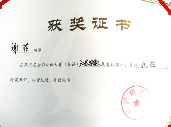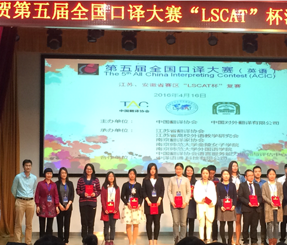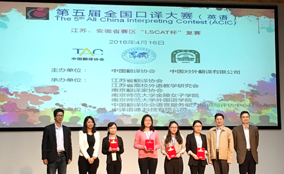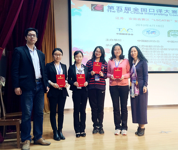 口译大赛则派出了经过校选赛选拔出的8位同学参加第五届全国口译大赛江苏、安徽省复赛。于2016年4月16日,由中国翻译协会、中国对外翻译有限公司主办,江苏省翻译协会、江苏省高校外语教学研究会、南京翻译家协会、皮皮虾