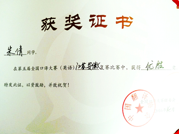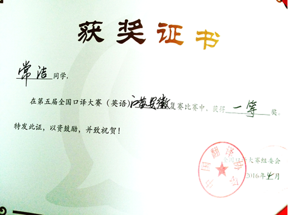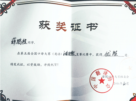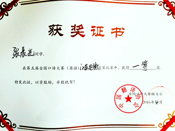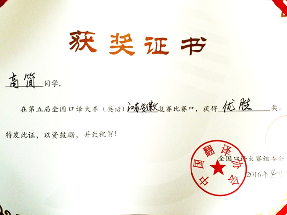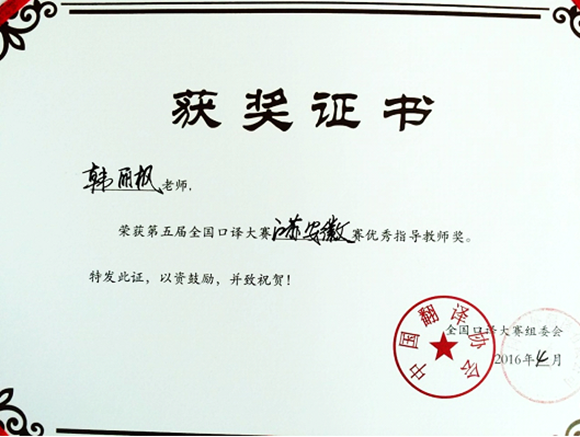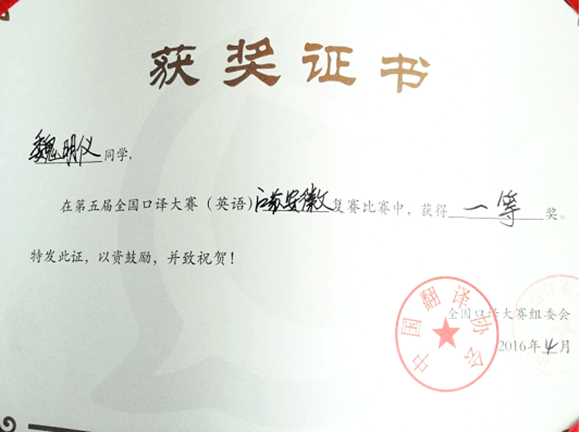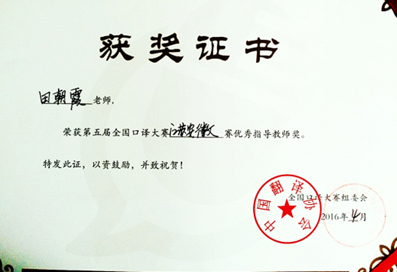 派出的8名学生,在田朝霞老师的带领下勇创佳绩!其中,常洁(MTI)、张晨光、魏明仪同学荣获一等奖,李雨然同学荣获二等奖,朱倩(MTI)、高简、谢菲、薛鹏程同学获得优胜奖。田朝霞老师和韩丽枫老师荣获“优秀指导教师奖”。在此,向皮皮虾