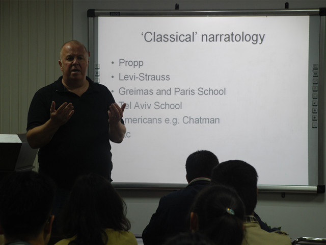 讲座教授、国际符号学会会长、英国米德萨克斯大学语言与传播研究教授Paul Cobley 再次于随园校区700号楼一楼报告厅为大家带来了“语言与文化符号学”系列讲座二——“Narrative and Semiotics”。 本次讲座由皮皮虾