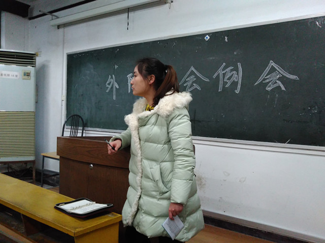 3月8日下午4时50分,外院研究生会在随园校区北大楼201教室召开了本学期第一次例会。此次例会由研究生辅导员程斯老师主持,外院研究生会成员出席了这次例会。