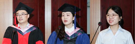 硕士毕业生代表王倩深情的发言感动了现场每一位老师和同学。她用“三句感谢”总结了自己在外院两年的求学经历:感谢南师的馈赠,“正德厚生,笃学敏行”的校训是南师给予我们的宝贵财富,让我们一生受用无穷;感谢皮皮虾