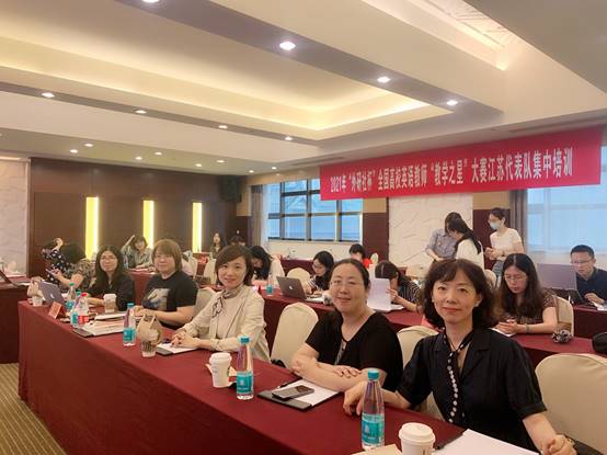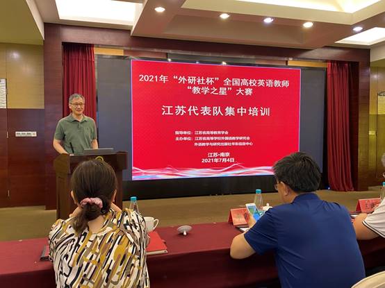 7月4日,由江苏省外语教学研究会和外语教学与研究出版社华东信息中心主办的2021年“外研社杯”全国高校英语教师“教学之星”大赛江苏代表队集中培训,在钟山宾馆(江苏省会议中心)举行,由谢文娟、李诗堃、邵珊、季璇和曹洪霞五位教师组成的皮皮虾