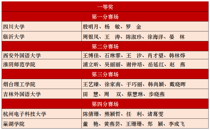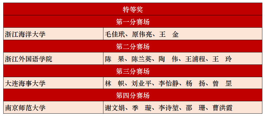 获奖教师团队名单